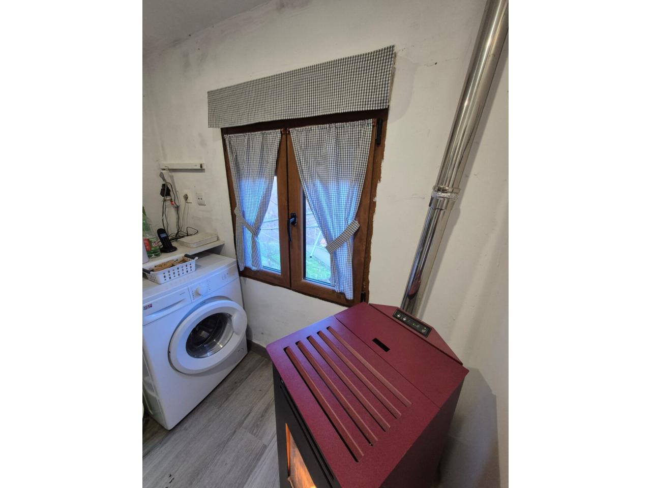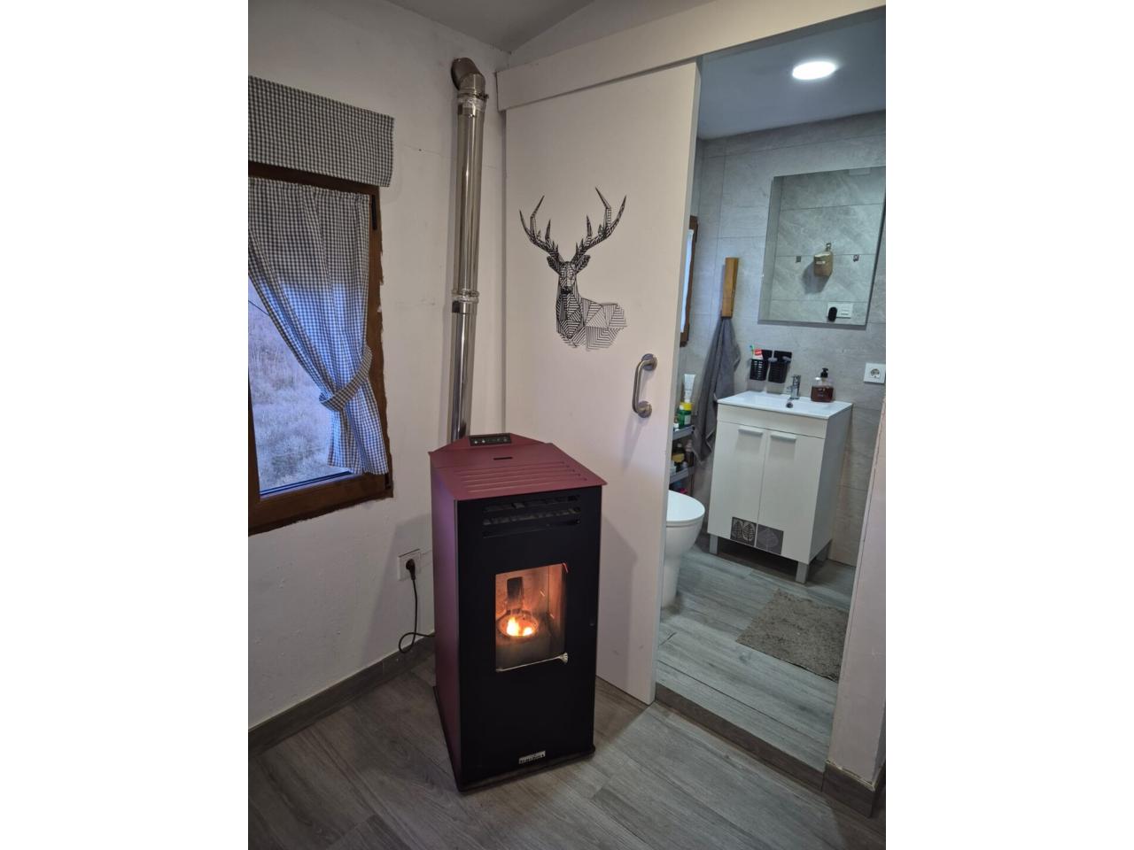 Estufa de pellets en la entrada, ideal para un ambiente cálido y confortable
